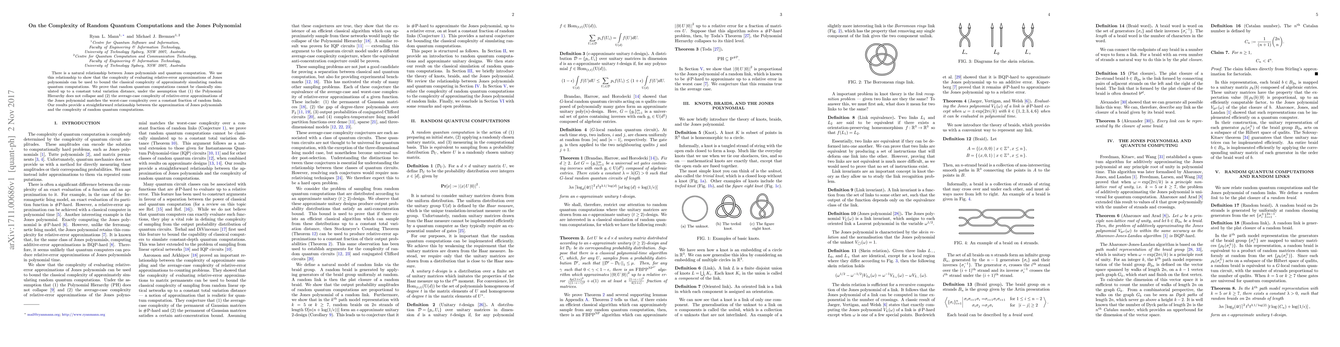 This paper establishes a link between the complexity of evaluating Jones polynomials and the classical simulation of random quantum computations, proving that random quantum computations cannot be classically simulated up to a constant total variation distance under certain complexity assumptions. The findings highlight the relationship between the approximation of Jones polynomials and the complexity of random quantum computations.
