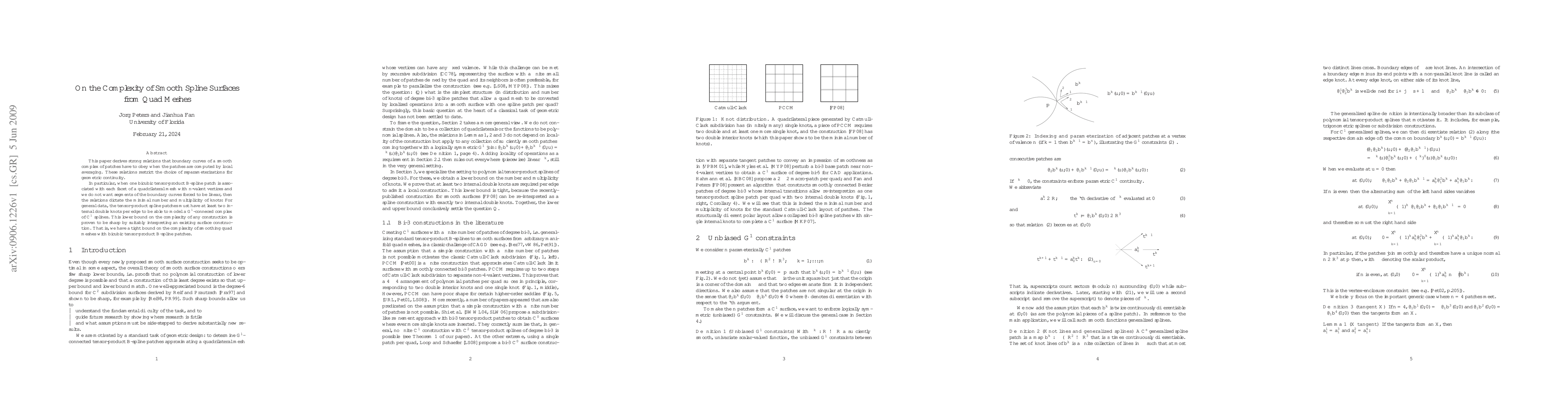 This paper derives strong relations that boundary curves of a smooth complex of patches have to obey when the patches are computed by local averaging. These relations restrict the choice of reparameterizations for geometric continuity. In particular, when one bicubic tensor-product B-spline patch is associated with each facet of a quadrilateral mesh with n-valent vertices and we do not want segments of the boundary curves forced to be linear, then the relations dictate the minimal number and multiplicity of knots: For general data, the tensor-product spline patches must have at least two internal double knots per edge to be able to model a G^1-conneced complex of C^1 splines. This lower bound on the complexity of any construction is proven to be sharp by suitably interpreting an existing surface construction. That is, we have a tight bound on the complexity of smoothing quad meshes with bicubic tensor-product B-spline patches.