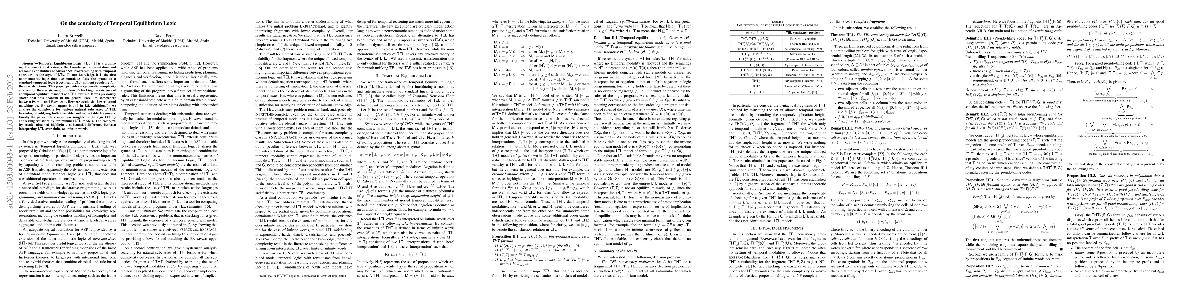 This paper conducts a complexity analysis of Temporal Equilibrium Logic (TEL), showing it resolves the complexity of checking temporal equilibrium models between PSPACE and EXPSPACE, with a matching lower bound for EXPSPACE. It also explores complexity within subclasses of TEL, highlighting differences in interpreting LTL over finite vs. infinite words.