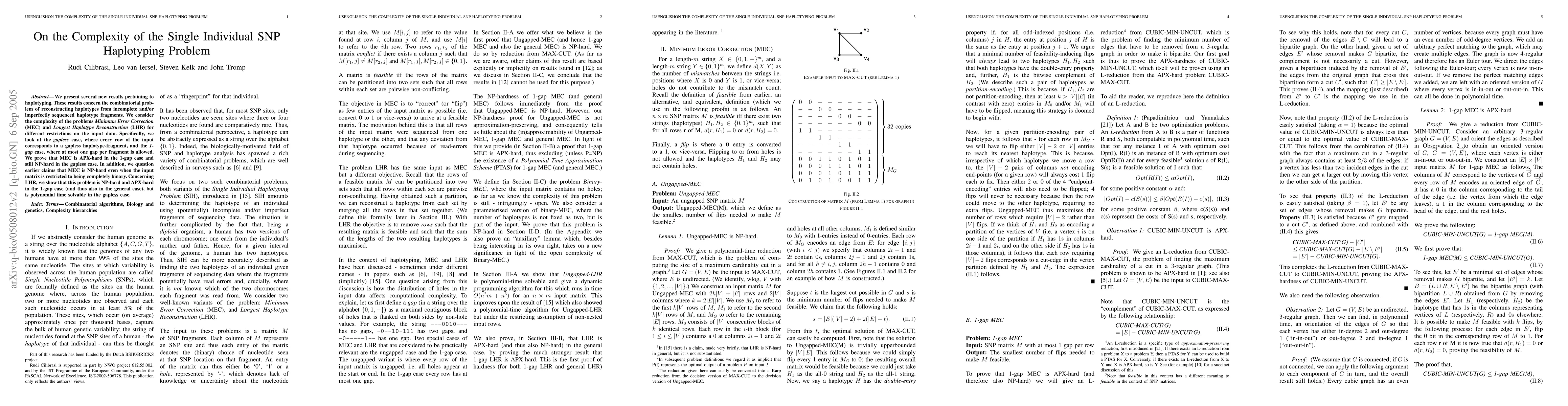 We present several new results pertaining to haplotyping. These results concern the combinatorial problem of reconstructing haplotypes from incomplete and/or imperfectly sequenced haplotype fragments. We consider the complexity of the problems Minimum Error Correction (MEC) and Longest Haplotype Reconstruction (LHR) for different restrictions on the input data. Specifically, we look at the gapless case, where every row of the input corresponds to a gapless haplotype-fragment, and the 1-gap case, where at most one gap per fragment is allowed. We prove that MEC is APX-hard in the 1-gap case and still NP-hard in the gapless case. In addition, we question earlier claims that MEC is NP-hard even when the input matrix is restricted to being completely binary. Concerning LHR, we show that this problem is NP-hard and APX-hard in the 1-gap case (and thus also in the general case), but is polynomial time solvable in the gapless case.