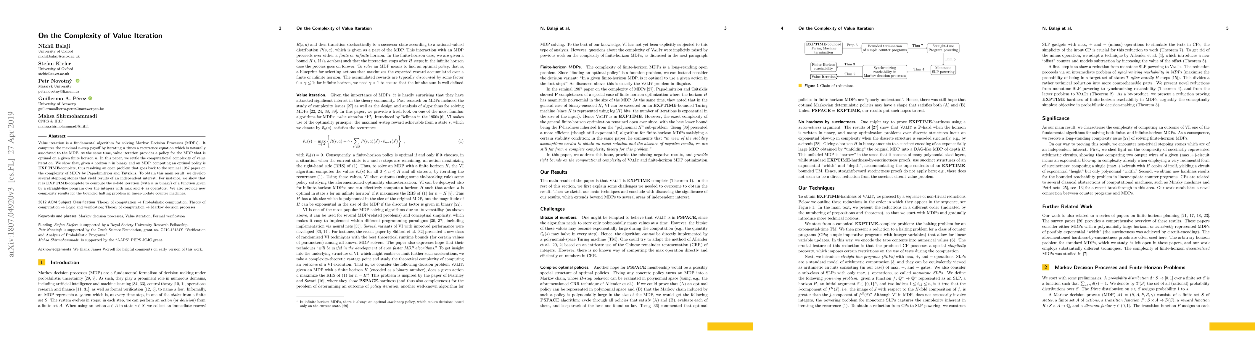 This paper resolves the computational complexity of value iteration for Markov Decision Processes, proving it to be EXP-complete. It also establishes that computing the $n$-fold iteration of a function defined by a straight-line program with $\max$ and $+$ operations is EXP-complete.