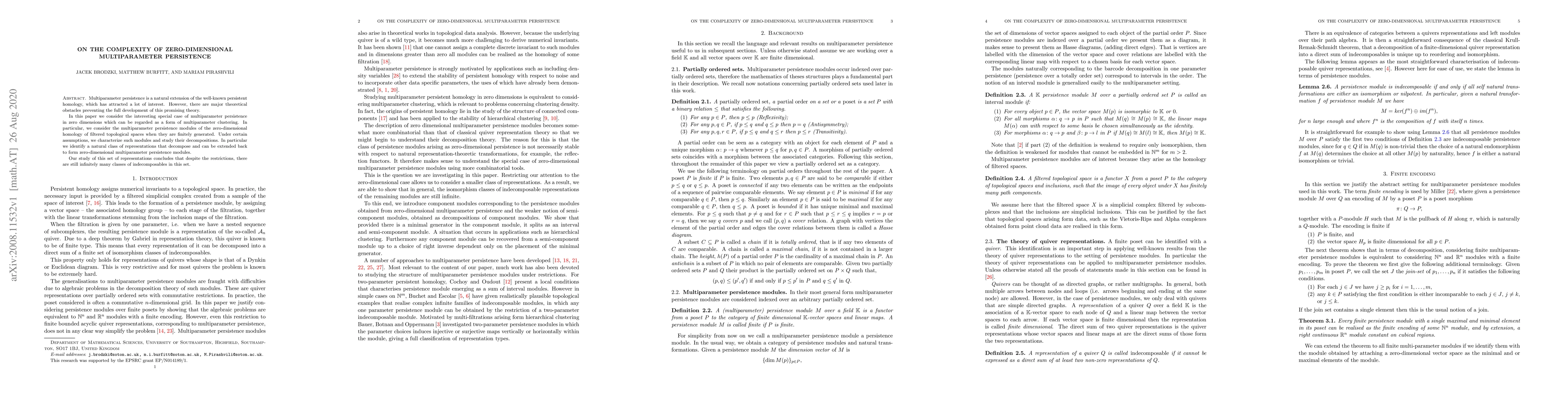 This paper explores the zero-dimensional aspect of multiparameter persistence, identifying a natural class of representations that decompose and extend back to form persistence modules. Despite the restrictions, it finds infinitely many classes of indecomposables within this set.