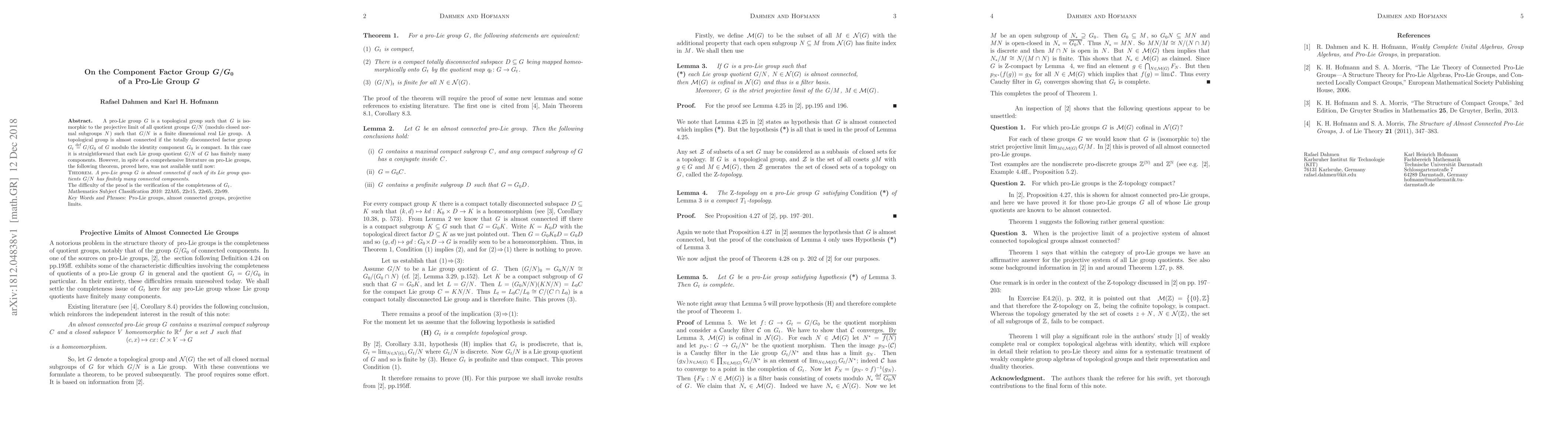 A pro-Lie group $G$ is a topological group such that $G$ is isomorphic to the projective limit of all quotient groups $G/N$ (modulo closed normal subgroups $N$) such that $G/N$ is a finite dimensional real Lie group. A topological group is almost connected if the totally disconnected factor group $G_t:= G/G_0$ of $G$ modulo the identity component $G_0$ is compact. In this case it is straightforward that each Lie group quotient $G/N$ of $G$ has finitely many components. However, in spite of a comprehensive literature on pro-Lie groups, the following theorem, proved here, was not available until now: A pro-Lie group $G$ is almost connected if each of its Lie group quotients $G/N$ has finitely many connected components. The difficulty of the proof is the verification of the completeness of $G_t$.