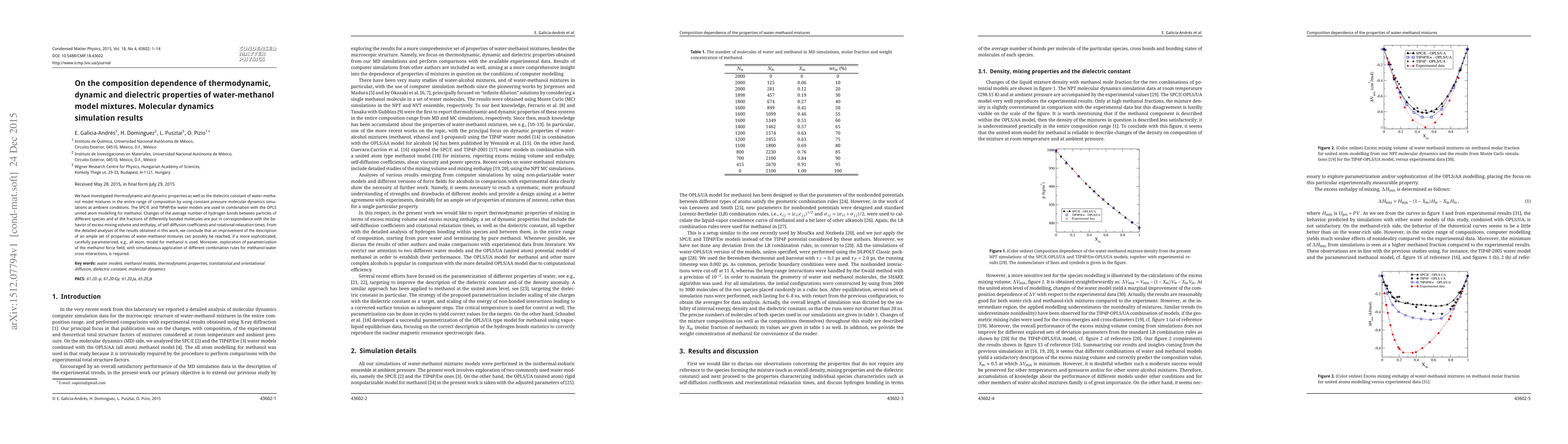 This study uses molecular dynamics simulations to investigate the thermodynamic, dynamic, and dielectric properties of water-methanol mixtures across all compositions. The results suggest that a more sophisticated methanol model could better describe the properties of these mixtures, highlighting the need for improved force field parametrization.