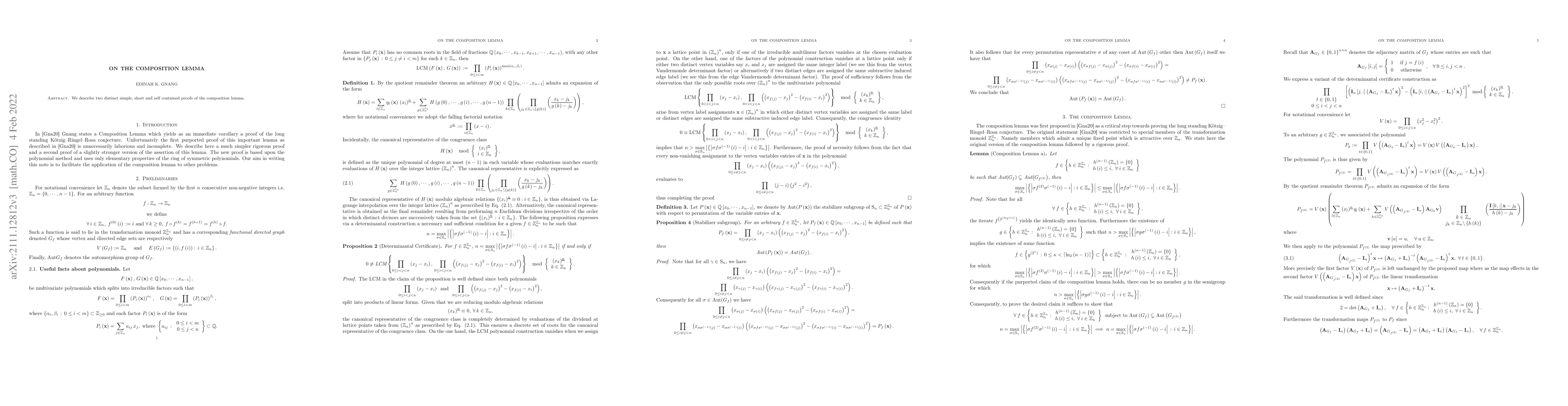 We describe two distinct simple, short and self contained proofs of the composition lemma.