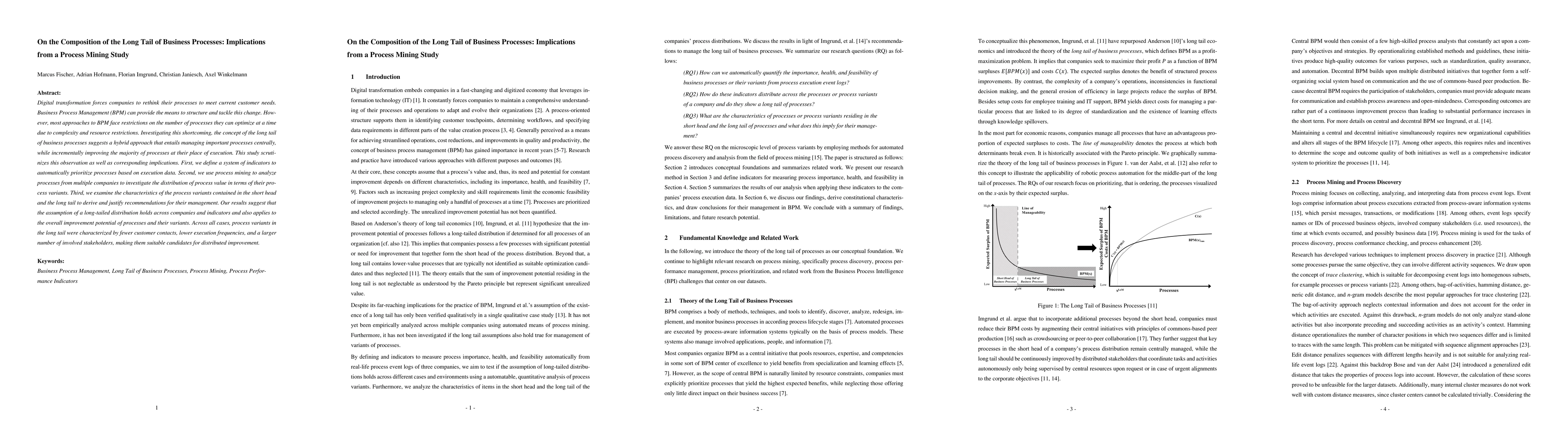 Digital transformation forces companies to rethink their processes to meet current customer needs. Business Process Management (BPM) can provide the means to structure and tackle this change. However, most approaches to BPM face restrictions on the number of processes they can optimize at a time due to complexity and resource restrictions. Investigating this shortcoming, the concept of the long tail of business processes suggests a hybrid approach that entails managing important processes centrally, while incrementally improving the majority of processes at their place of execution. This study scrutinizes this observation as well as corresponding implications. First, we define a system of indicators to automatically prioritize processes based on execution data. Second, we use process mining to analyze processes from multiple companies to investigate the distribution of process value in terms of their process variants. Third, we examine the characteristics of the process variants contained in the short head and the long tail to derive and justify recommendations for their management. Our results suggest that the assumption of a long-tailed distribution holds across companies and indicators and also applies to the overall improvement potential of processes and their variants. Across all cases, process variants in the long tail were characterized by fewer customer contacts, lower execution frequencies, and a larger number of involved stakeholders, making them suitable candidates for distributed improvement.