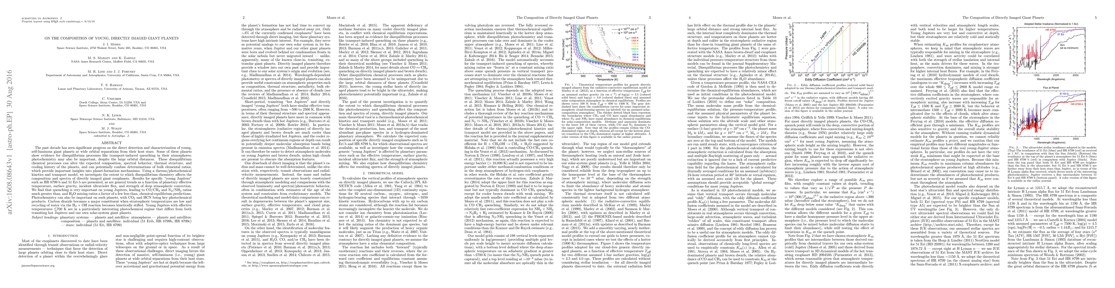 This paper investigates the impact of disequilibrium chemistry on young, directly imaged giant planets, finding that transport-induced quenching and photochemistry significantly alter their composition and spectra. It highlights that young Jupiters exhibit CO/CH4 and N2/NH3 ratios deviating from equilibrium predictions, with CO2 and HCN as key photochemical products, especially in cooler planets.
