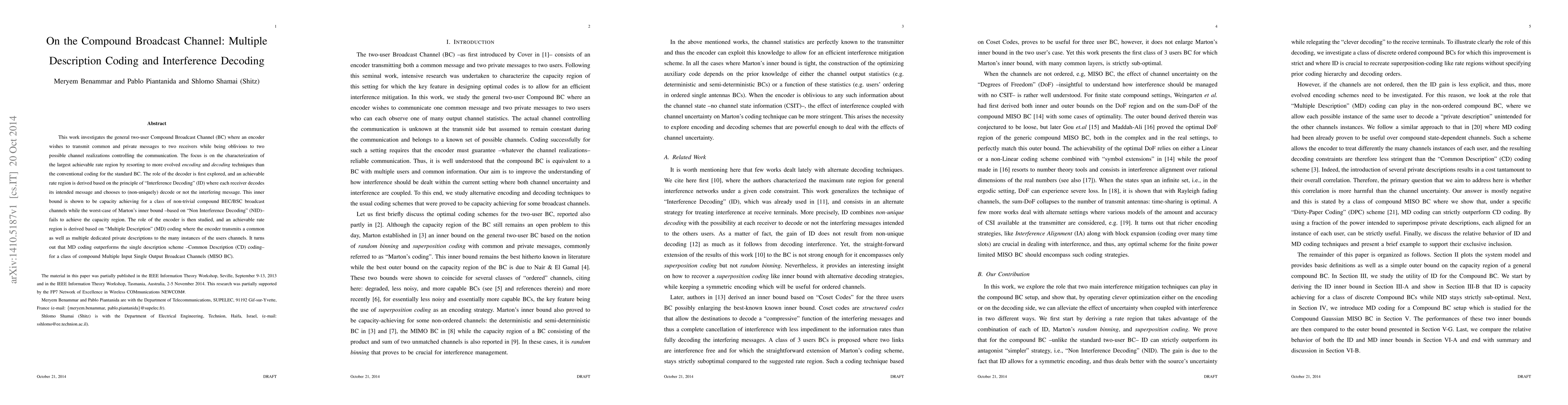 This paper explores the Compound Broadcast Channel, focusing on achieving the largest rate region using advanced techniques like Interference Decoding and Multiple Description coding. It demonstrates that Interference Decoding is capacity-achieving for certain channels, while Multiple Description coding outperforms traditional coding in specific MISO scenarios.