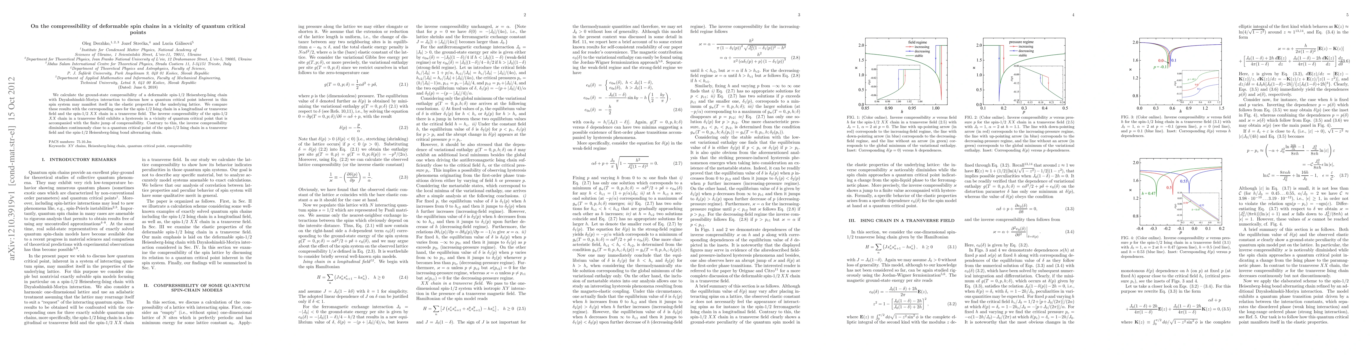 Researchers studied the compressibility of deformable spin chains near quantum critical points, finding a hysteresis in one chain but not another, with implications for understanding lattice elasticity.