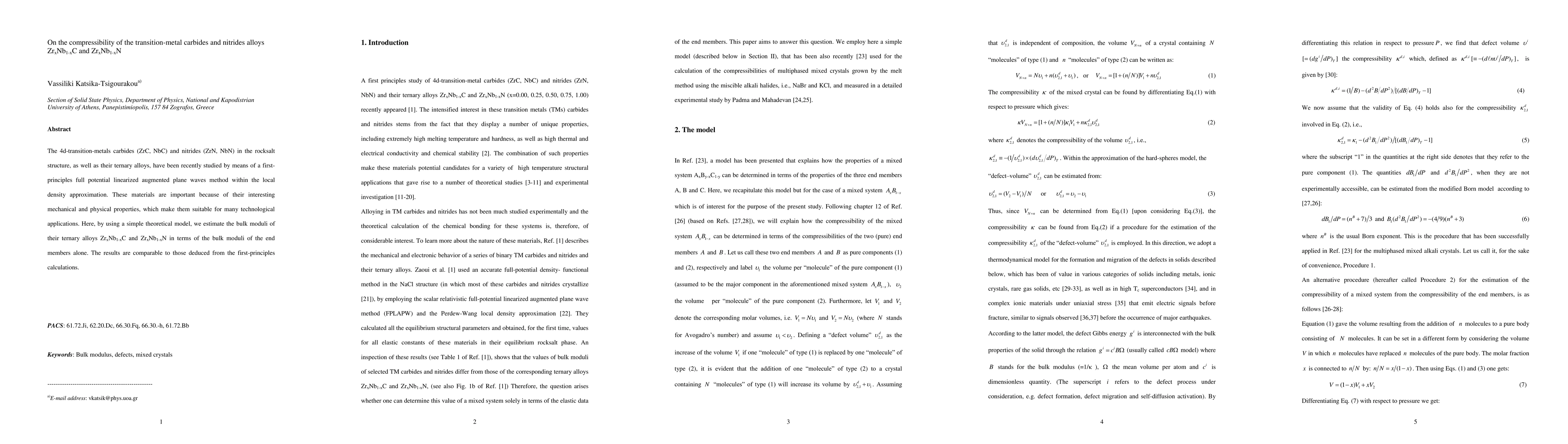 Researchers studied the compressibility of transition-metal carbides and nitrides alloys using a simple model, comparing results to first-principles calculations.