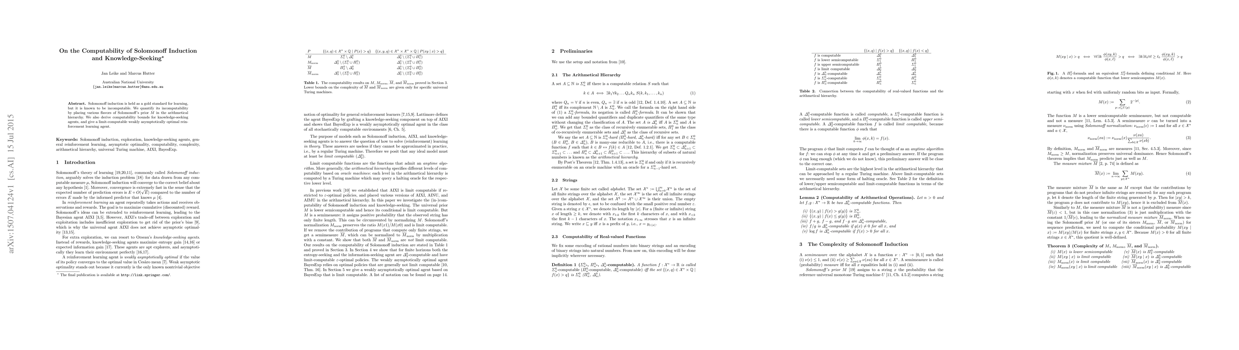 This paper investigates the computability of Solomonoff induction, a learning algorithm considered a gold standard, and finds that some variants are incomputable. However, it also introduces a limit-computable reinforcement learning agent with weakly asymptotically optimal performance.
