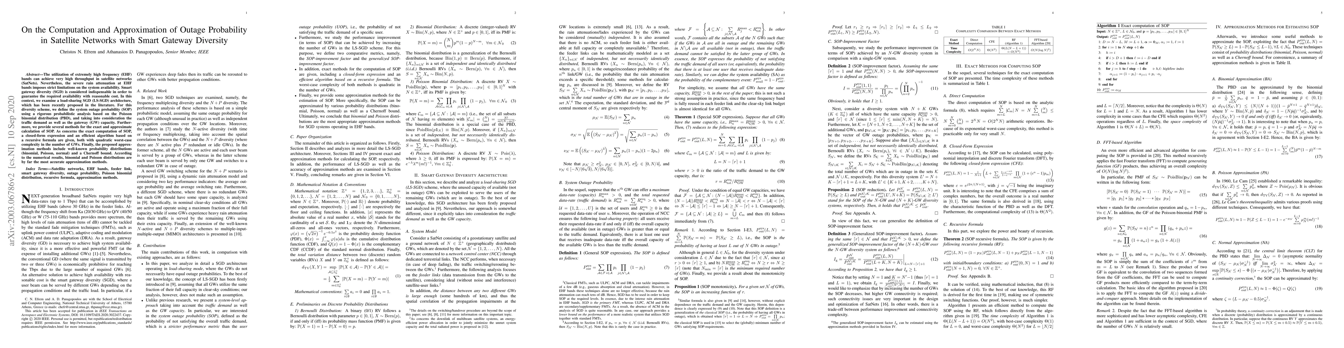 The utilization of extremely high frequency (EHF) bands can achieve very high throughput in satellite networks (SatNets). Nevertheless, the severe rain attenuation at EHF bands imposes strict limitations on the system availability. Smart gateway diversity (SGD) is considered indispensable in order to guarantee the required availability with reasonable cost. In this context, we examine a load-sharing SGD (LS-SGD) architecture, which has been recently proposed in the literature. For this diversity scheme, we define the system outage probability (SOP) using a rigorous probabilistic analysis based on the Poisson binomial distribution (PBD), and taking into consideration the traffic demand as well as the gateway (GW) capacity. Furthermore, we provide several methods for the exact and approximate calculation of SOP. As concerns the exact computation of SOP, a closed-form expression and an efficient algorithm based on a recursive formula are given, both with quadratic worst-case complexity in the number of GWs. Finally, the proposed approximation methods include well-known probability distributions (binomial, Poisson, normal) and a Chernoff bound. According to the numerical results, binomial and Poisson distributions are by far the most accurate approximation methods.