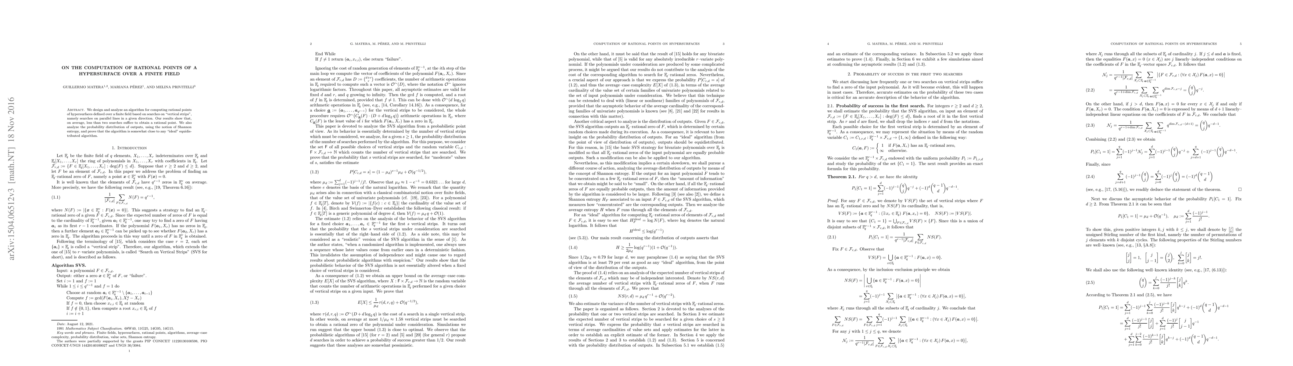 We design and analyze an algorithm for computing rational points of hypersurfaces defined over a finite field based on searches on "vertical strips", namely searches on parallel lines in a given direction. Our results show that, on average, less than two searches suffice to obtain a rational point. We also analyze the probability distribution of outputs, using the notion of Shannon entropy, and prove that the algorithm is somewhat close to any "ideal" equidistributed algorithm.