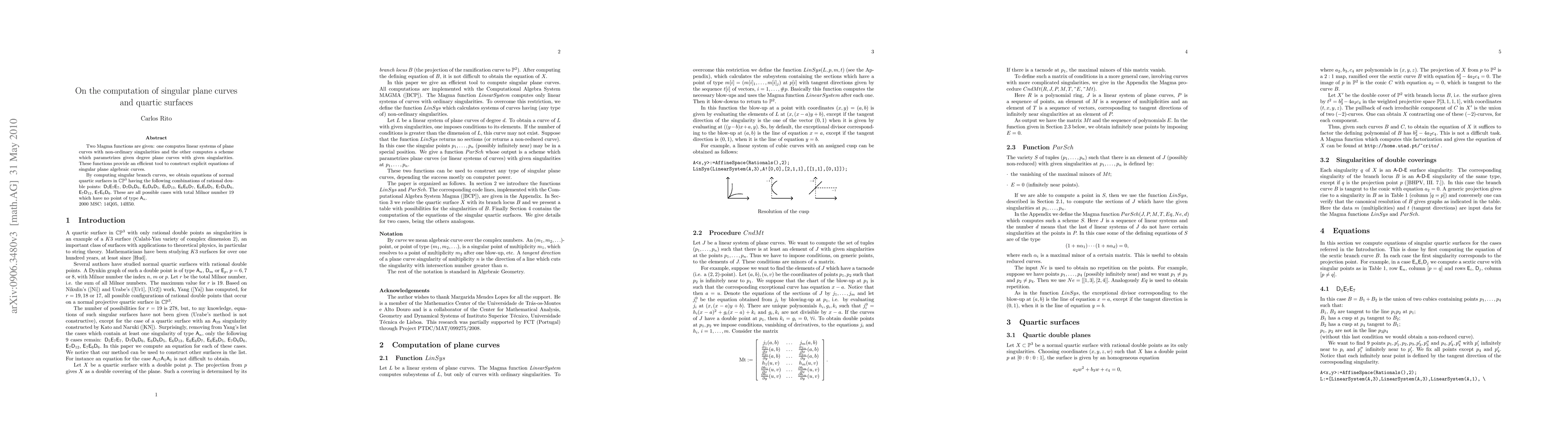 Researchers created a new method to compute equations of singular plane curves and quartic surfaces with specific types of rational double points, providing an efficient tool for algebraic curve construction.