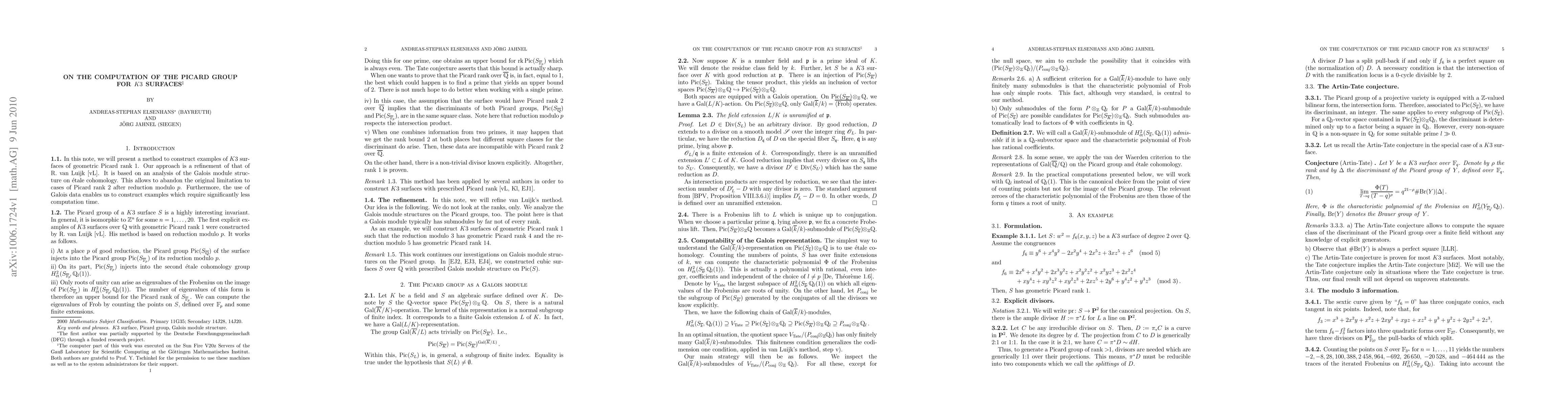 This paper refines R. van Luijk's method to construct $K3$ surfaces with geometric Picard rank $1$, utilizing Galois module analysis of étale cohomology, which extends beyond previously limited cases and significantly reduces computational effort.