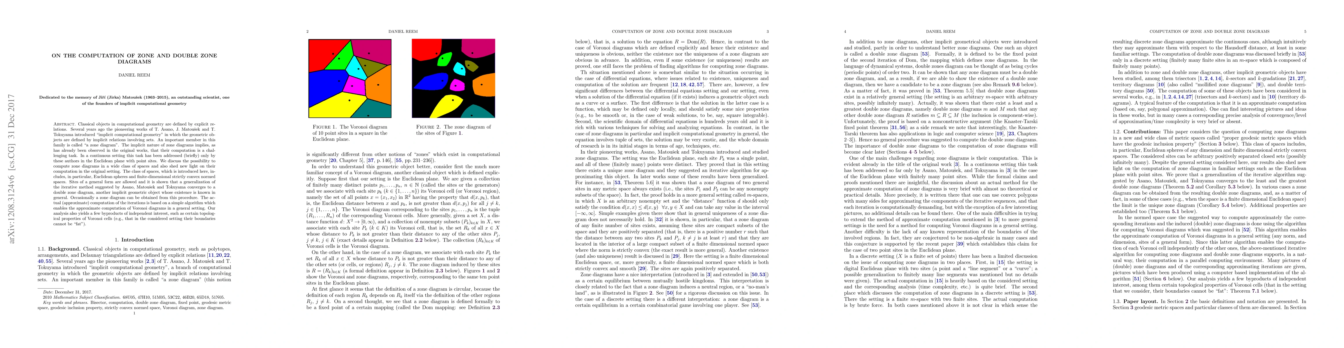 Classical objects in computational geometry are defined by explicit relations. Several years ago the pioneering works of T. Asano, J. Matousek and T. Tokuyama introduced "implicit computational geometry", in which the geometric objects are defined by implicit relations involving sets. An important member in this family is called "a zone diagram". The implicit nature of zone diagrams implies, as already observed in the original works, that their computation is a challenging task. In a continuous setting this task has been addressed (briefly) only by these authors in the Euclidean plane with point sites. We discuss the possibility to compute zone diagrams in a wide class of spaces and also shed new light on their computation in the original setting. The class of spaces, which is introduced here, includes, in particular, Euclidean spheres and finite dimensional strictly convex normed spaces. Sites of a general form are allowed and it is shown that a generalization of the iterative method suggested by Asano, Matousek and Tokuyama converges to a double zone diagram, another implicit geometric object whose existence is known in general. Occasionally a zone diagram can be obtained from this procedure. The actual (approximate) computation of the iterations is based on a simple algorithm which enables the approximate computation of Voronoi diagrams in a general setting. Our analysis also yields a few byproducts of independent interest, such as certain topological properties of Voronoi cells (e.g., that in the considered setting their boundaries cannot be "fat").