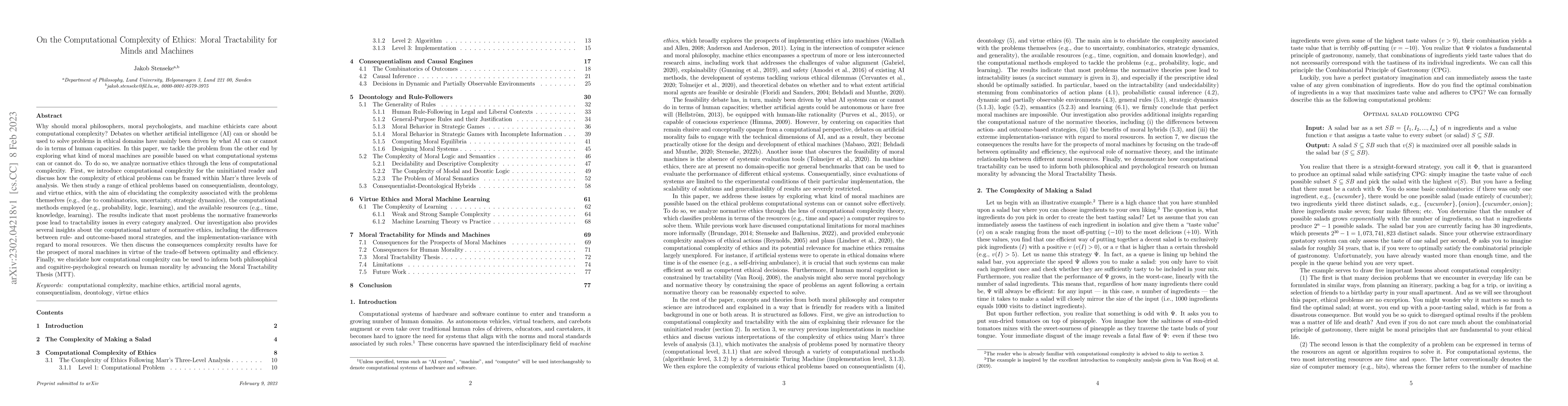 This paper explores the computational complexity of ethical problems to determine the feasibility of creating moral machines. It examines ethical issues through complexity theory, revealing that most normative frameworks pose significant tractability challenges, impacting the design of moral AI and informing philosophical and psychological research on human morality.