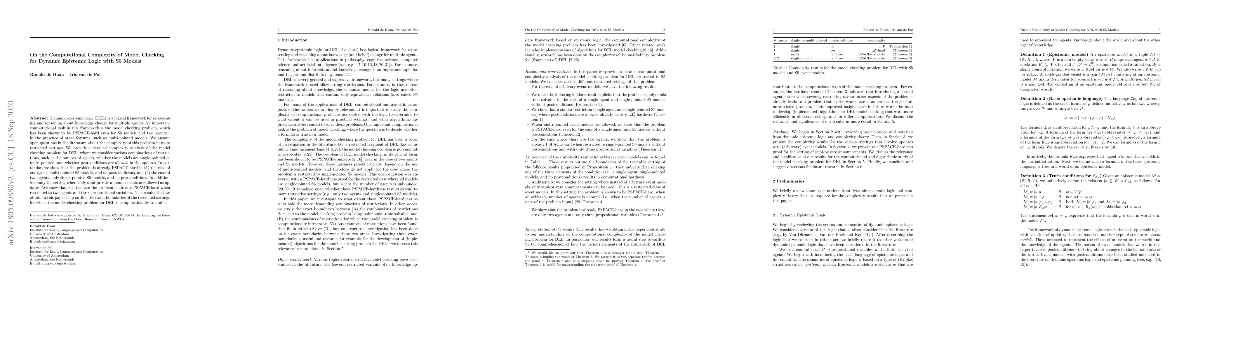This paper analyzes the computational complexity of model checking for Dynamic Epistemic Logic with S5 models, finding it PSPACE-hard in various restricted settings, including one agent, multi-pointed models, and no postconditions.