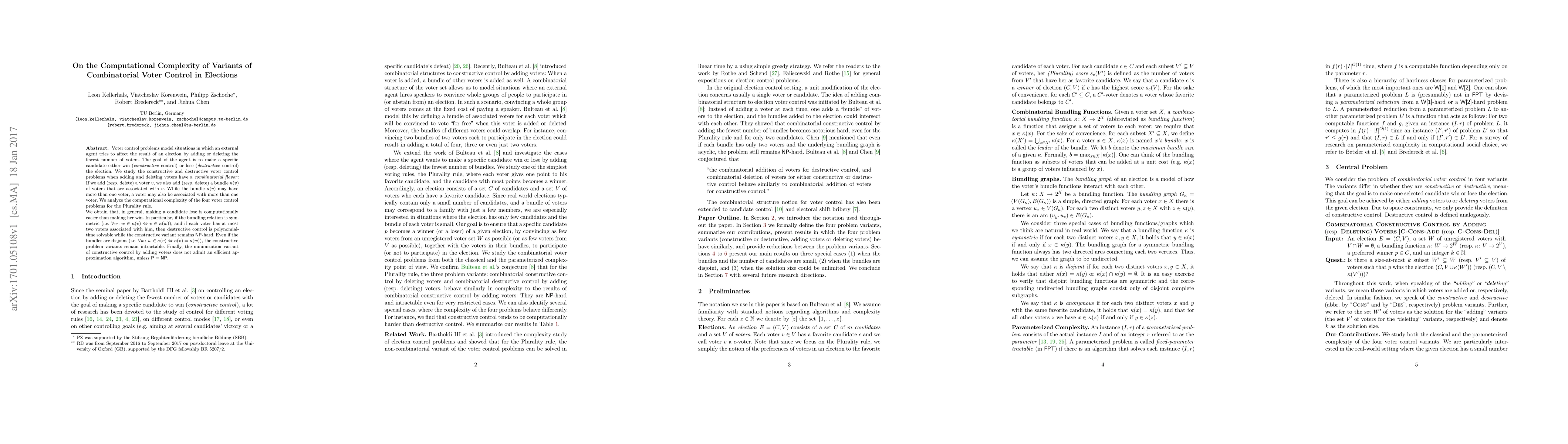 This paper investigates the computational complexity of voter control problems under combinatorial constraints, focusing on the Plurality rule. It finds that destructive control is easier than constructive control, with polynomial-time solutions for certain symmetric bundling conditions, while constructive control remains NP-hard and lacks efficient approximation algorithms.