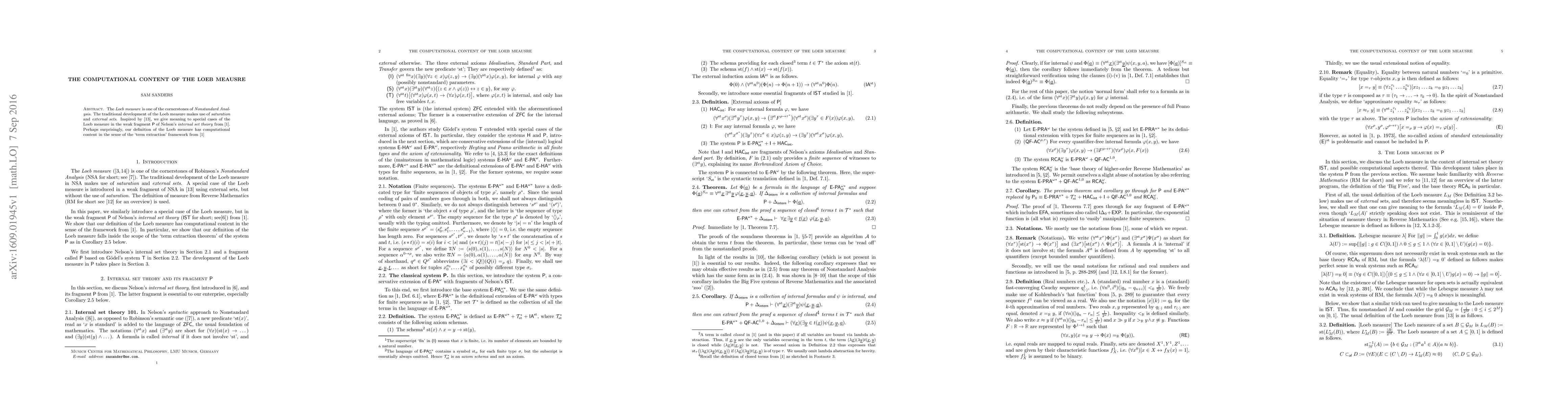The Loeb measure is one of the cornerstones of Nonstandard Analysis. The traditional development of the Loeb measure makes use of saturation and external sets. Inspired by [13], we give meaning to special cases of the Loeb measure in the weak fragment $\textsf{P}$ of Nelson's internal set theory from [1]. Perhaps surprisingly, our definition of the Loeb measure has computational content in the sense of the `term extraction' framework from [1].
