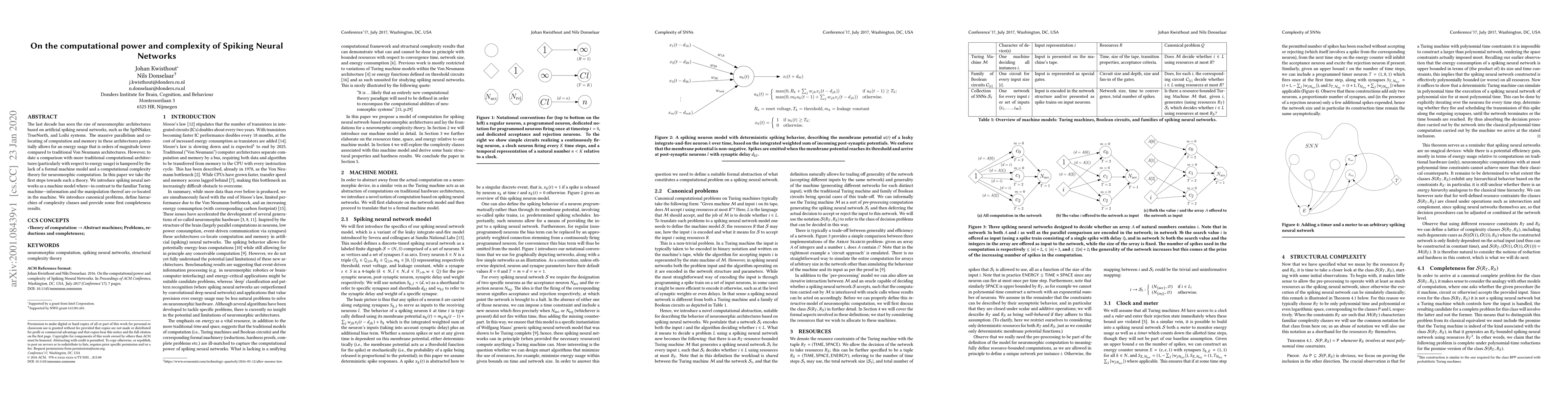 A hierarchical approach to computing complexity classes for spiking neural networks (SNNs) was proposed, combining theoretical results with practical applications.