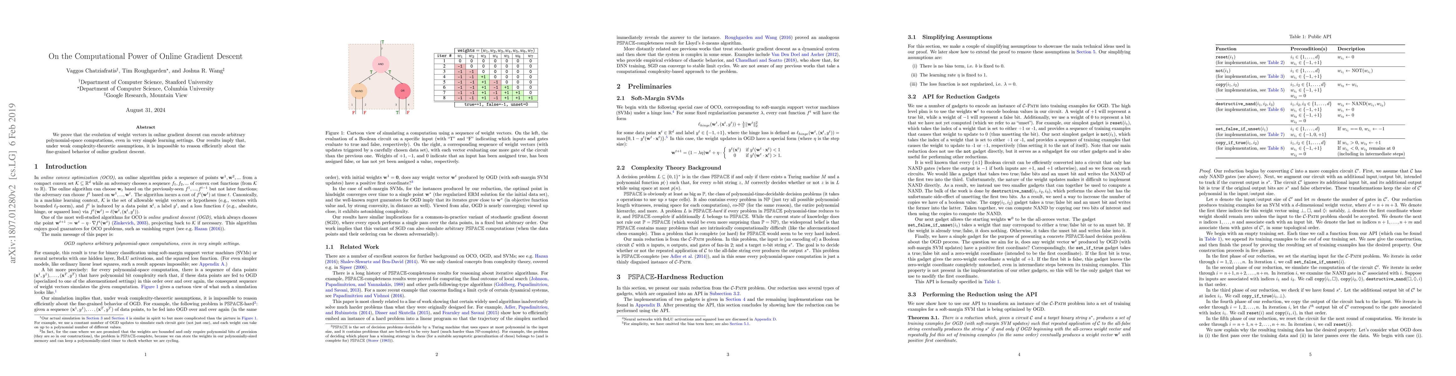 Summary: This paper demonstrates that online gradient descent can perform polynomial-space computations, indicating that understanding its detailed behavior is computationally infeasible under standard complexity assumptions. The findings challenge the efficiency of analyzing the intricate dynamics of online gradient descent.