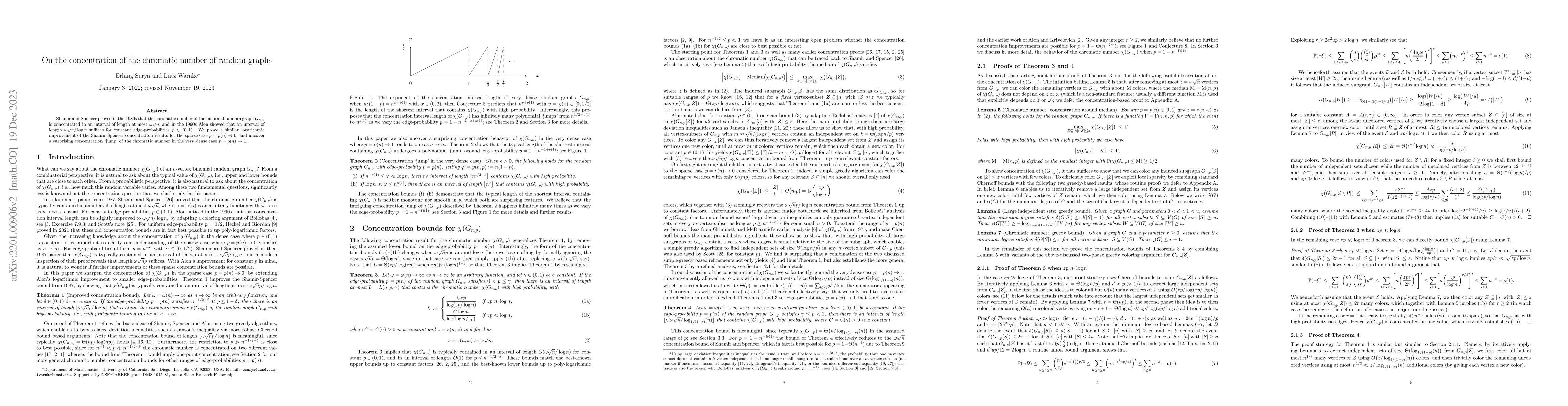 This paper improves upon Shamir and Spencer's results on the concentration of the chromatic number in random graphs, showing a logarithmic refinement for sparse graphs. It also reveals an unexpected concentration 'jump' in the chromatic number for very dense graphs.