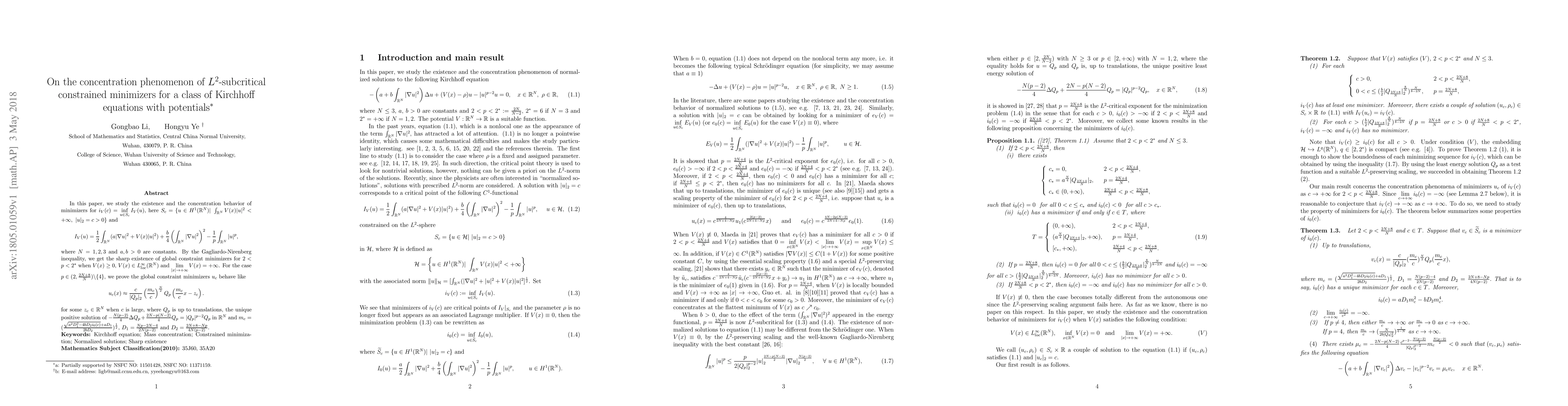 In this paper, we study the existence and the concentration behavior of minimizers for $i_V(c)=\inf\limits_{u\in S_c}I_V(u)$, here $S_c=\{u\in H^1(\R^N)|~\int_{\R^N}V(x)|u|^2<+\infty,~|u|_2=c>0\}$ and $$I_V(u)=\frac{1}{2}\ds\int_{\R^N}(a|\nabla u|^2+V(x)|u|^2)+\frac{b}{4}\left(\ds\int_{\R^N}|\nabla u|^2\right)^2-\frac{1}{p}\ds\int_{\R^N}|u|^{p},$$ where $N=1,2,3$ and $a,b>0$ are constants. By the Gagliardo-Nirenberg inequality, we get the sharp existence of global constraint minimizers for $2