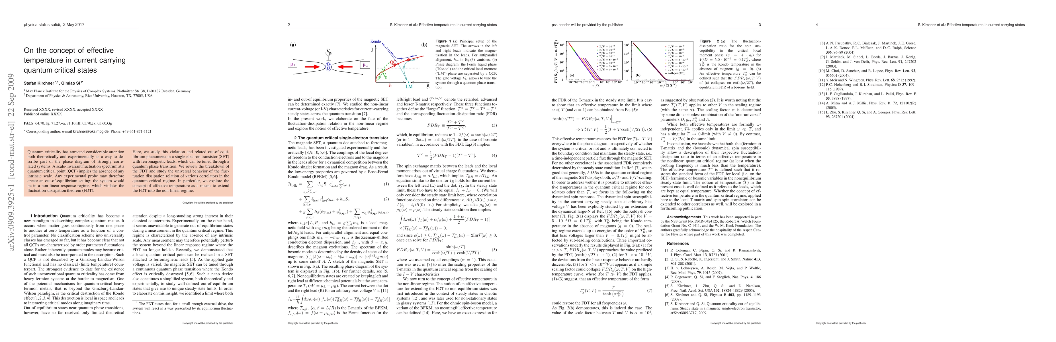 Quantum criticality has attracted considerable attention both theoretically and experimentally as a way to describe part of the phase diagram of strongly correlated systems. A scale-invariant fluctuation spectrum at a quantum critical point implies the absence of any intrinsic scale. Any experimental probe may therefore create an out-of-equilibrium setting; the system would be in a non-linear response regime, which violates the fluctuation-dissipation theorem. Here, we study this violation and related out-of equilibrium phenomena in a single electron transistor with ferromagnetic leads, which can be tuned through a quantum phase transition. We review the breakdown of the fluctuation-dissipation theorem and study the universal behavior of the fluctuation dissipation relation of various correlators in the quantum critical regime. In particular, we explore the concept of effective temperature as a means to extend the fluctuation-dissipation theorem into the non-linear regime.