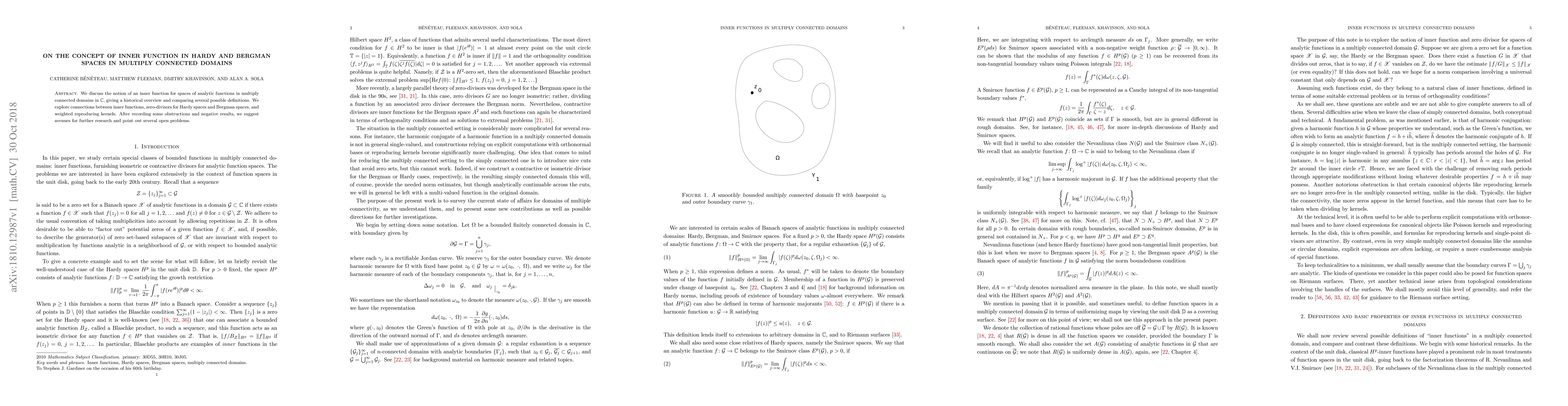 We discuss the notion of an inner function for spaces of analytic functions in multiply connected domains in $\mathbb{C}$, giving a historical overview and comparing several possible definitions. We explore connections between inner functions, zero-divisors for Hardy spaces and Bergman spaces, and weighted reproducing kernels. After recording some obstructions and negative results, we suggest avenues for further research and point out several open problems.