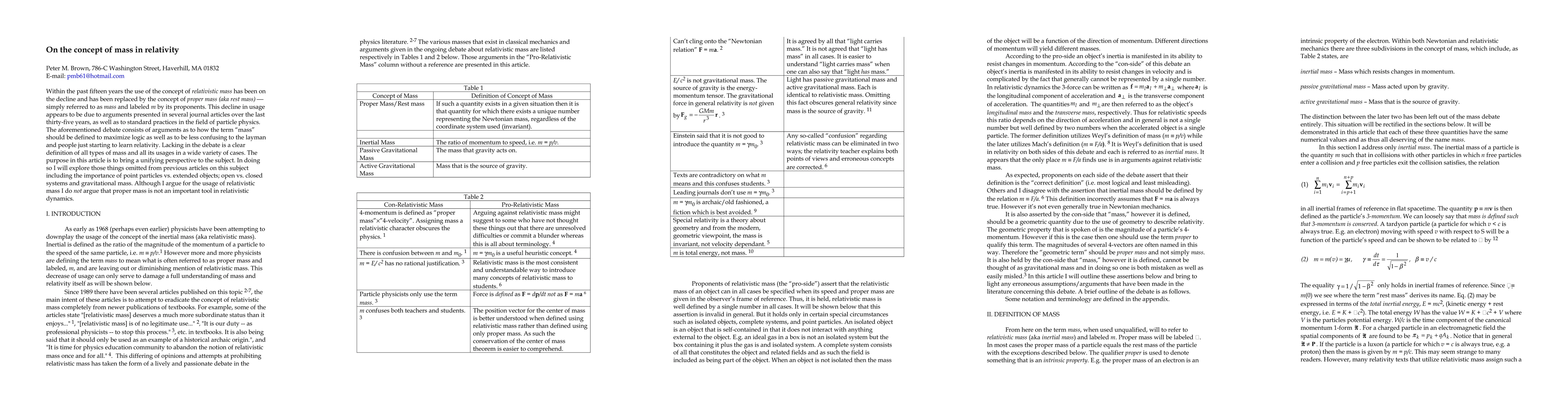 The paper offers a detailed examination of the concept of relativistic mass, its relationship with other mass types, and its role in general relativity, providing a coherent argument for its continued relevance in relativistic physics.
