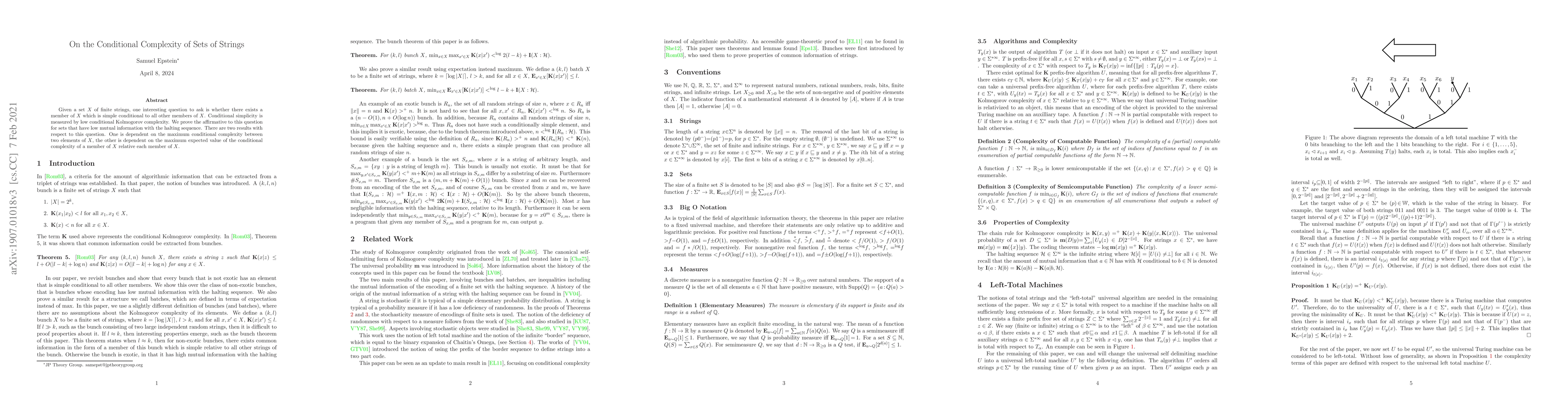 A research paper proves that a set of strings has a member with low conditional complexity to all others if its elements have low mutual information with the halting sequence, or if the maximum expected value of conditional complexity is below a certain threshold.