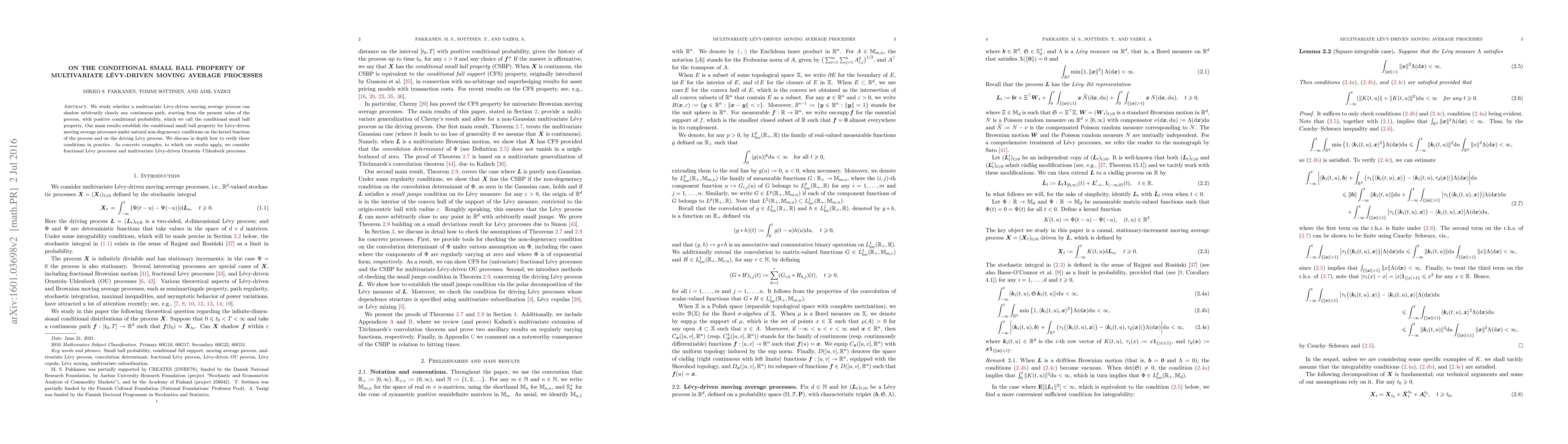 The paper establishes the conditional small ball property for multivariate Lévy-driven moving average processes under non-degeneracy conditions. It provides practical guidelines for verifying these conditions and applies the results to fractional Lévy processes and multivariate Lévy-driven Ornstein-Uhlenbeck processes.