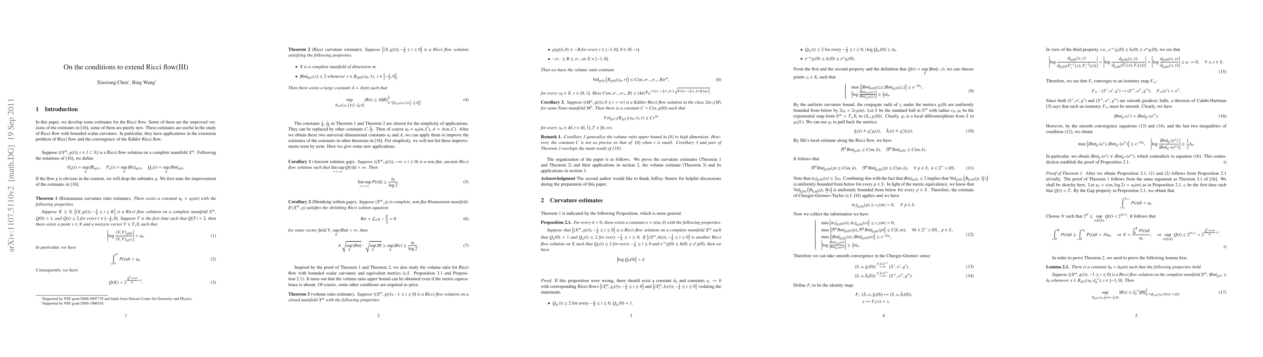 We simplify and improve the curvature estimates in the paper: On the conditions to extend Ricci flow(II). Furthermore, we develop some volume estimates for the Ricci flow with bounded scalar curvature. These estimates can be applied to study the singularities of the Ricci flow and convergence properties of the K\"ahler Ricci flow.