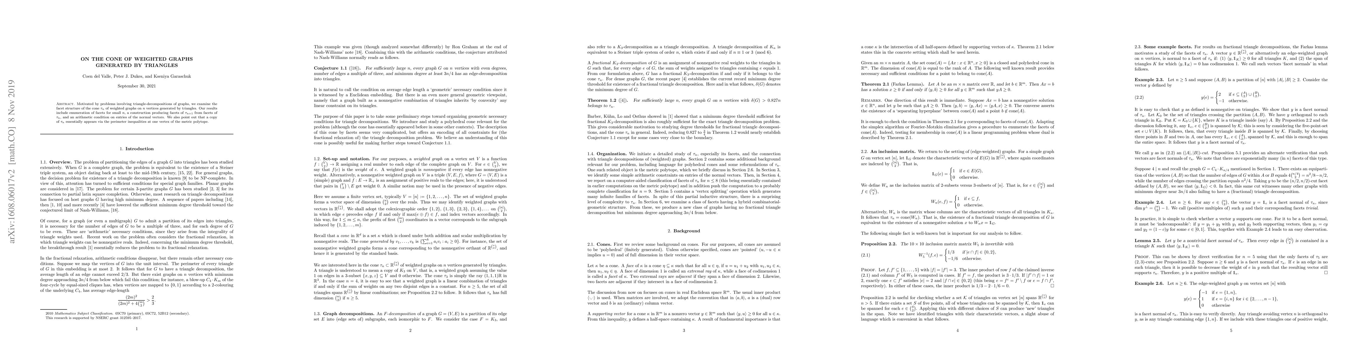 The paper explores the structure of a cone of weighted graphs generated by triangles, including a construction method for producing new facets from existing ones and an arithmetic condition on normal vectors.