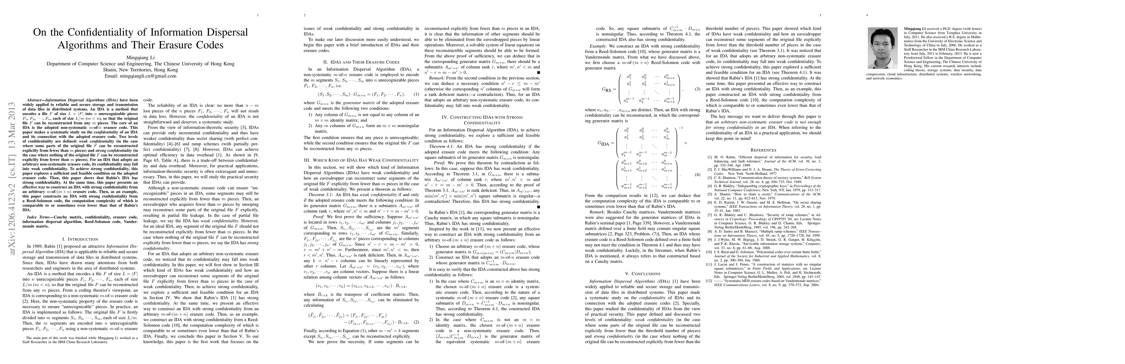 \emph{Information Dispersal Algorithms (IDAs)} have been widely applied to