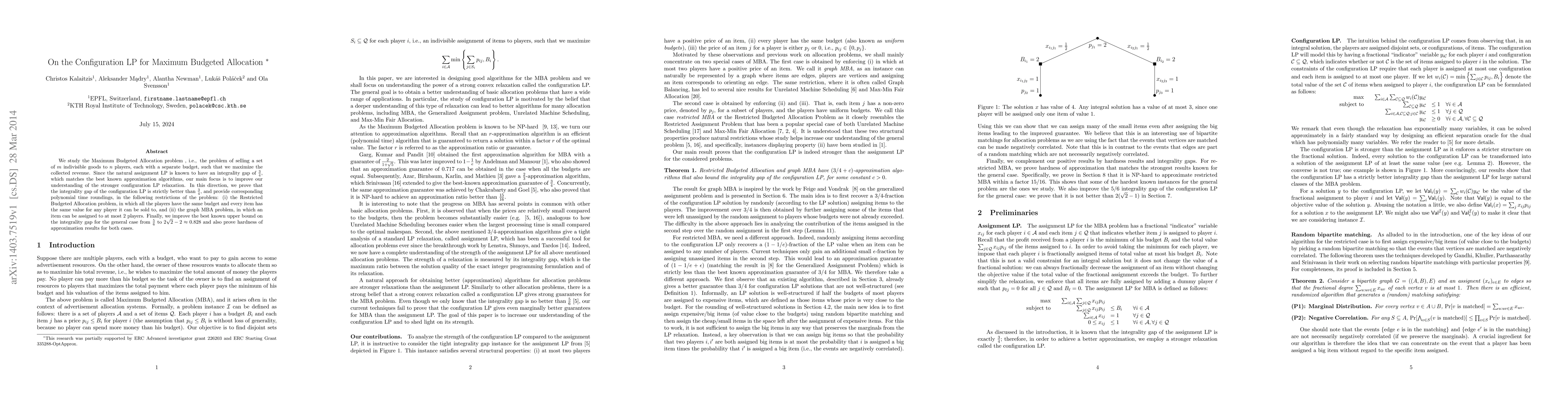 Researchers improve understanding of configuration LP relaxation for maximum budgeted allocation problem, proving a stricter integrality gap than previously known, with implications for polynomial-time roundings in specific restricted cases.