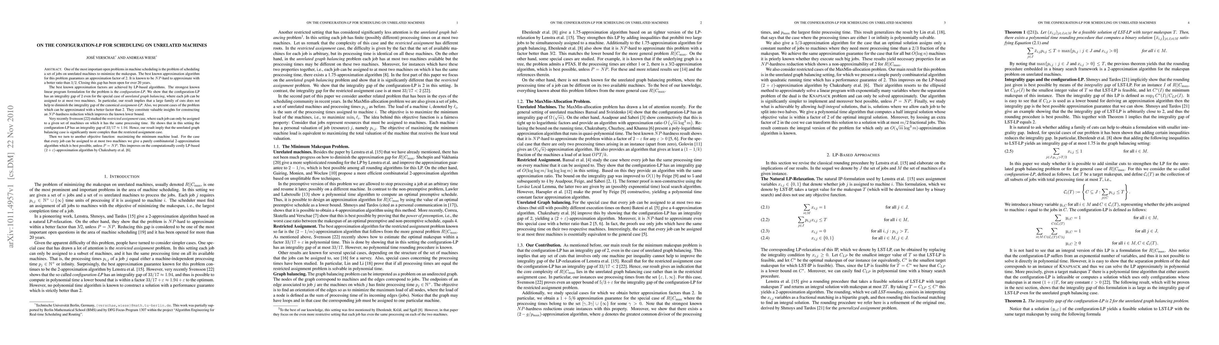 The paper investigates the configuration-LP for scheduling on unrelated machines to minimize makespan, showing its integrality gap of 2 for unrelated graph balancing. It also highlights that a large family of cuts cannot diminish the gap of the canonical assignment-LP, and presents combinatorial 2-approximation algorithms for maximizing minimum machine load that outperform LP-based methods.