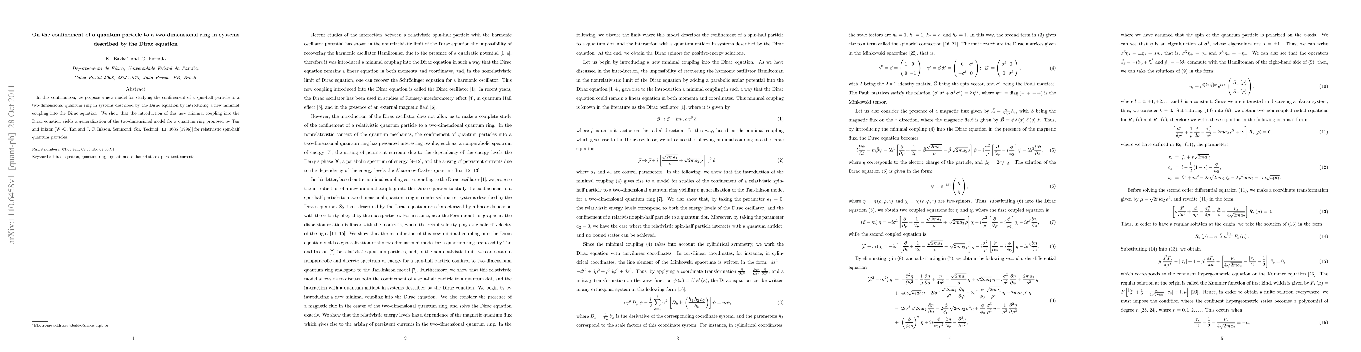 This paper proposes a new model for studying relativistic spin-half particles confined to a two-dimensional quantum ring using a modified Dirac equation with a novel minimal coupling, generalizing the existing non-relativistic model for quantum rings.