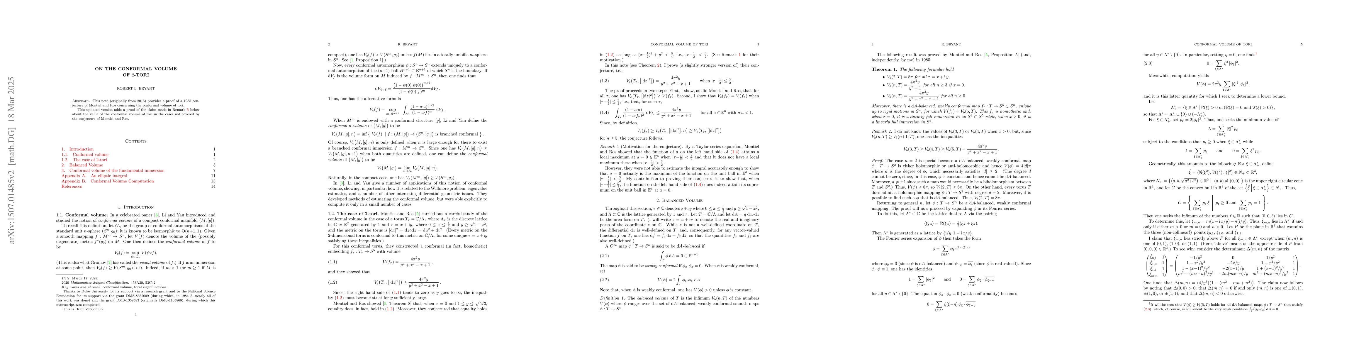 This paper proves the 1985 conjecture by Montiel and Ros regarding the conformal volume of 2-tori, addressing recent interest in the topic. The findings confirm the conjectured relationship between the conformal volume and the torus's geometry.