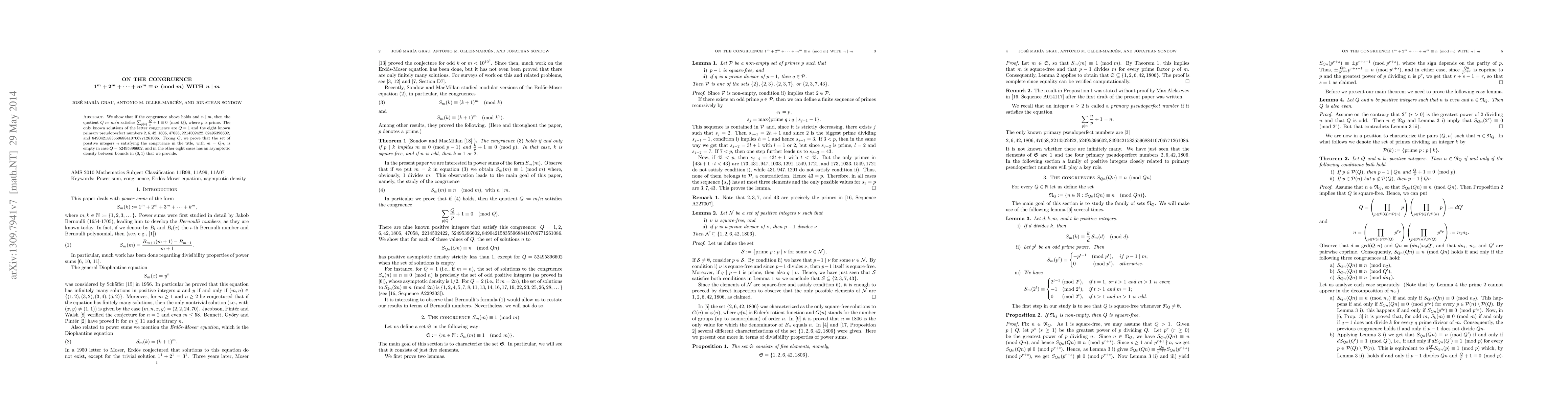 This paper demonstrates that if the congruence $1^m + 2^m + \dotsb + m^m \equiv n \pmod{m}$ holds with $n \mid m$, then $Q = m/n$ satisfies $\sum_{p\mid Q} \frac{Q}{p}+1 \equiv 0\pmod{Q}$. The only known solutions for this latter congruence are specific primary pseudoperfect numbers, and it is shown that for $Q=52495396602$, no positive integers $n$ satisfy the original congruence.