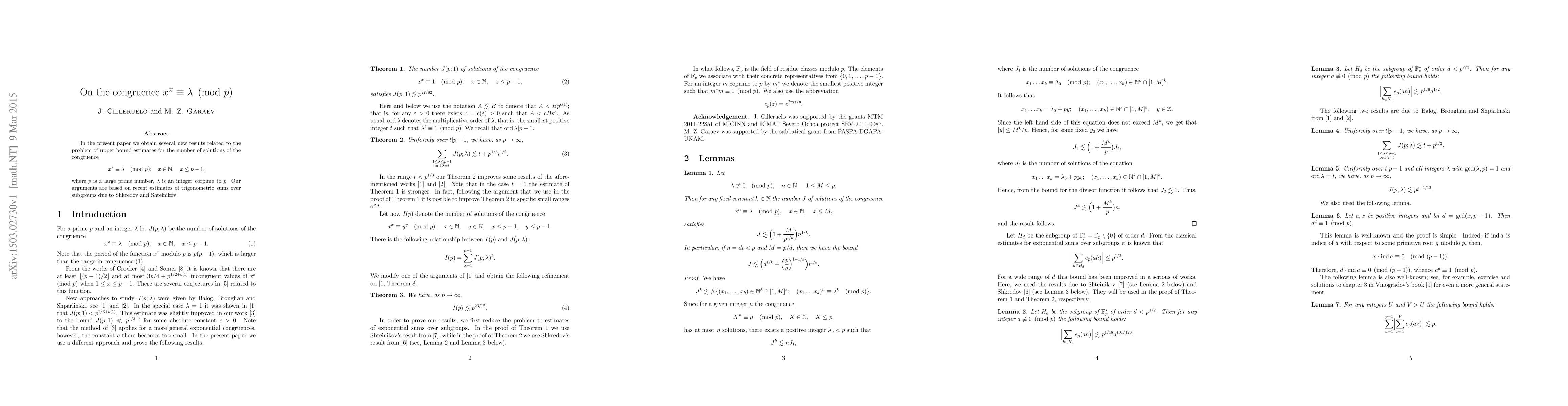 In the present paper we obtain several new results related to the problem of upper bound estimates for the number of solutions of the congruence $$ x^{x}\equiv \lambda\pmod p;\quad x\in \mathbb{N},\quad x\le p-1, $$ where $p$ is a large prime number, $\lambda$ is an integer corpime to $p$. Our arguments are based on recent estimates of trigonometric sums over subgroups due to Shkredov and Shteinikov.