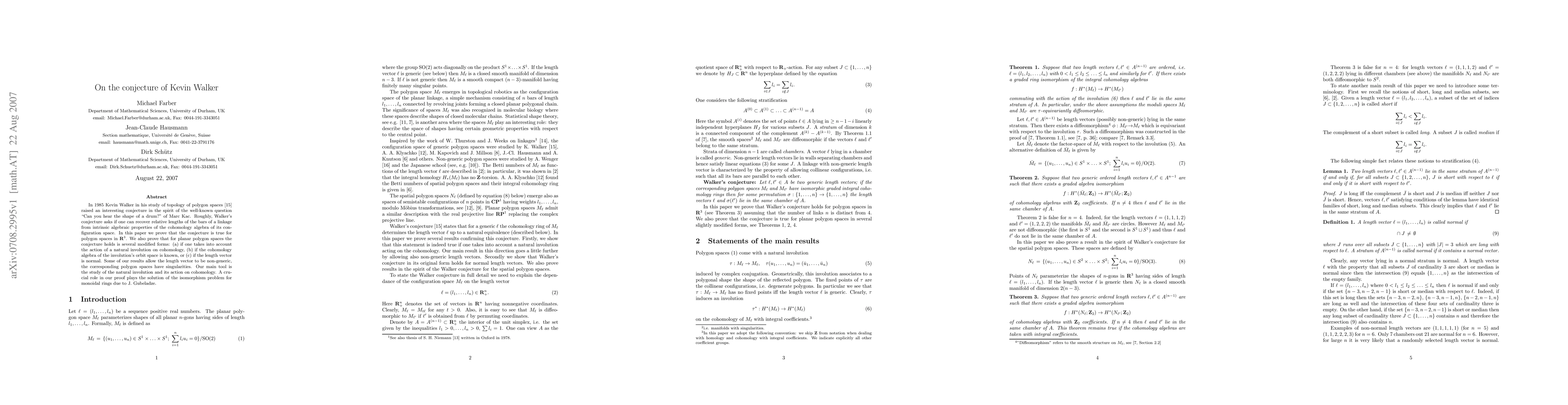 In 1985 Kevin Walker in his study of topology of polygon spaces raised an interesting conjecture in the spirit of the well-known question "Can you hear the shape of a drum?" of Marc Kac. Roughly, Walker's conjecture asks if one can recover relative lengths of the bars of a linkage from intrinsic algebraic properties of the cohomology algebra of its configuration space. In this paper we prove that the conjecture is true for polygon spaces in R^3. We also prove that for planar polygon spaces the conjecture holds is several modified forms: (a) if one takes into account the action of a natural involution on cohomology, (b) if the cohomology algebra of the involution's orbit space is known, or (c) if the length vector is normal. Some of our results allow the length vector to be non-generic, the corresponding polygon spaces have singularities. Our main tool is the study of the natural involution and its action on cohomology. A crucial role in our proof plays the solution of the isomorphism problem for monoidal rings due to J. Gubeladze.