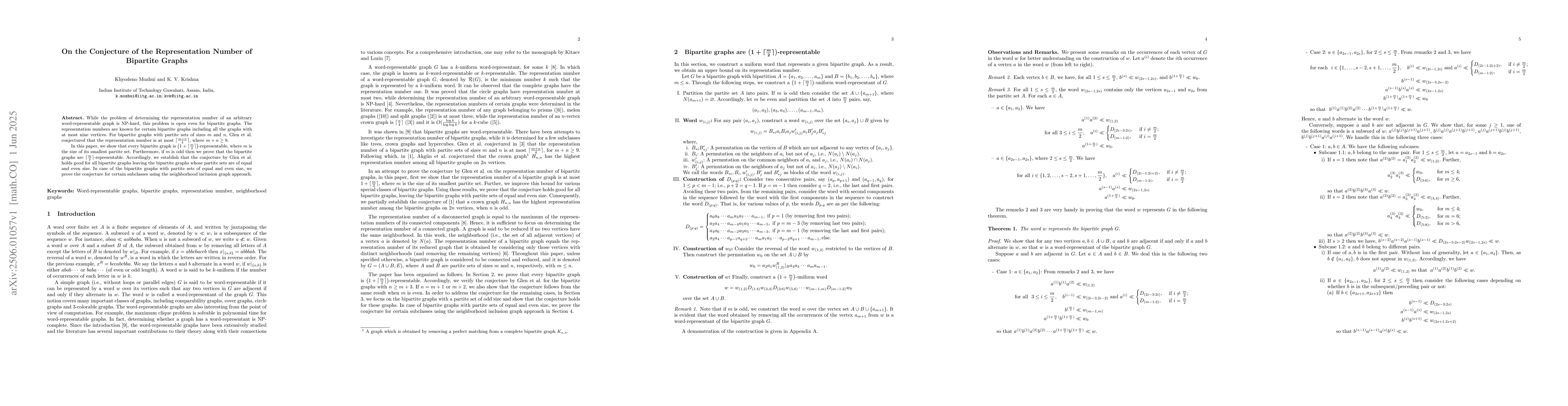 The paper proves that every bipartite graph is (1+⌈m/2⌉)-representable, supporting the Glen et al. conjecture for most bipartite graphs.