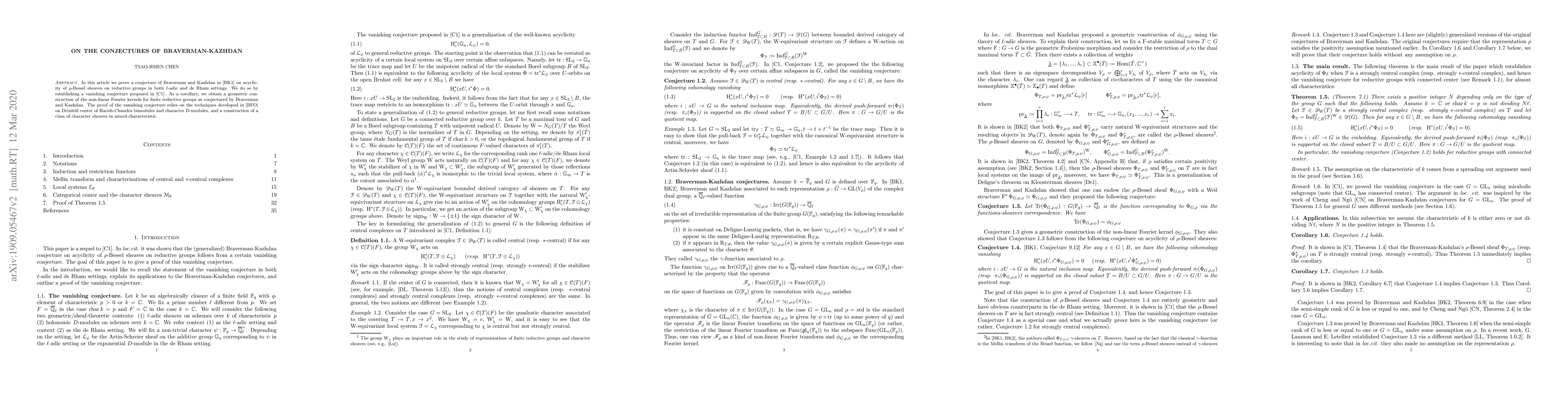 This paper proves a conjecture by Braverman and Kazhdan about the acyclicity of u03c1-Bessel sheaves on reductive groups in both u03bb-adic and de Rham settings. The proof involves establishing a separate vanishing conjecture, leading to a geometric construction of non-linear Fourier kernels for finite reductive groups. The methodology leverages techniques from Harish-Chandra bimodules, Drinfeld centers, and character D-modules, alongside a mixed-characteristic character sheaf construction.