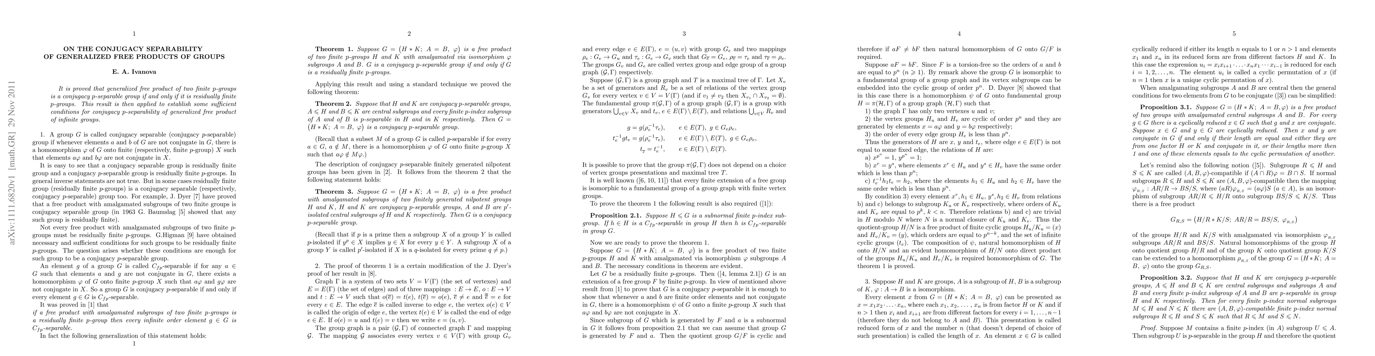 It is proved that generalized free product of two finite p-groups is a conjugacy p-separable group if and only if it is residually finite p-groups. This result is then applied to establish some sufficient conditions for conjugacy p-separability of generalized free product of infinite groups.