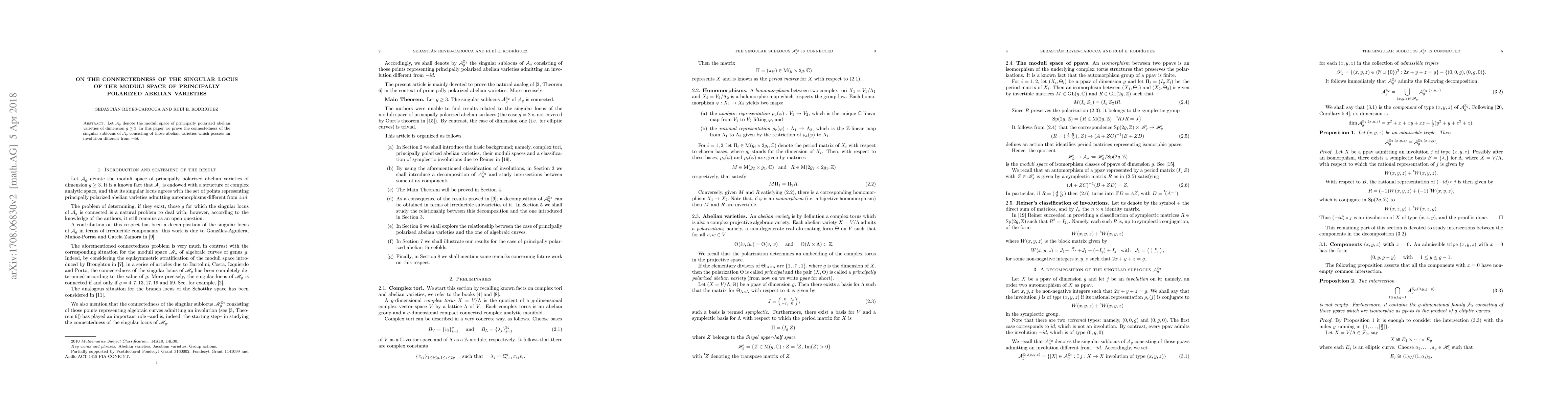 This paper proves that the singular sublocus of the moduli space $\mathcal{A}_g$ for principally polarized abelian varieties of dimension $g \ge 3$ containing varieties with involutions other than $-id$ is connected. The result contributes to understanding the structure of singular points in the moduli space.