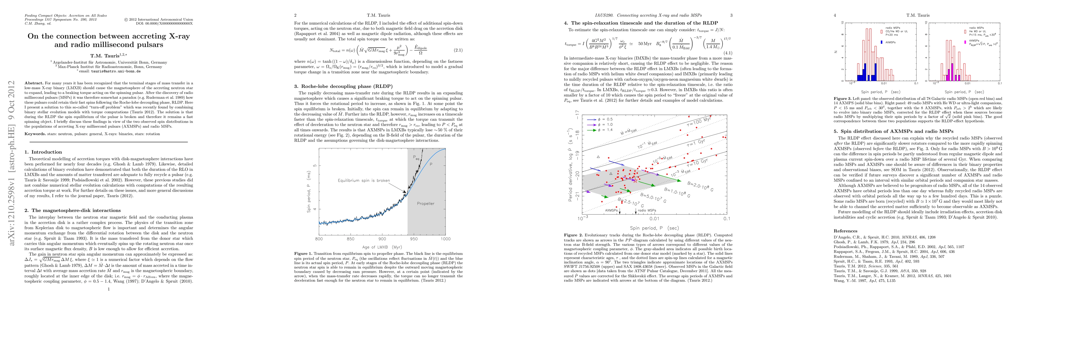 For many years it has been recognized that the terminal stages of mass transfer in a low-mass X-ray binary (LMXB) should cause the magnetosphere of the accreting neutron star to expand, leading to a braking torque acting on the spinning pulsar. After the discovery of radio millisecond pulsars (MSPs) it was therefore somewhat a paradox (e.g. Ruderman et al. 1989) how these pulsars could retain their fast spins following the Roche-lobe decoupling phase, RLDP. Here I present a solution to this so-called "turn-off problem" which was recently found by combining binary stellar evolution models with torque computations (Tauris 2012). The solution is that during the RLDP the spin equilibrium of the pulsar is broken and therefore it remains a fast spinning object. I briefly discuss these findings in view of the two observed spin distributions in the populations of accreting X-ray millisecond pulsars (AXMSPs) and radio MSPs.