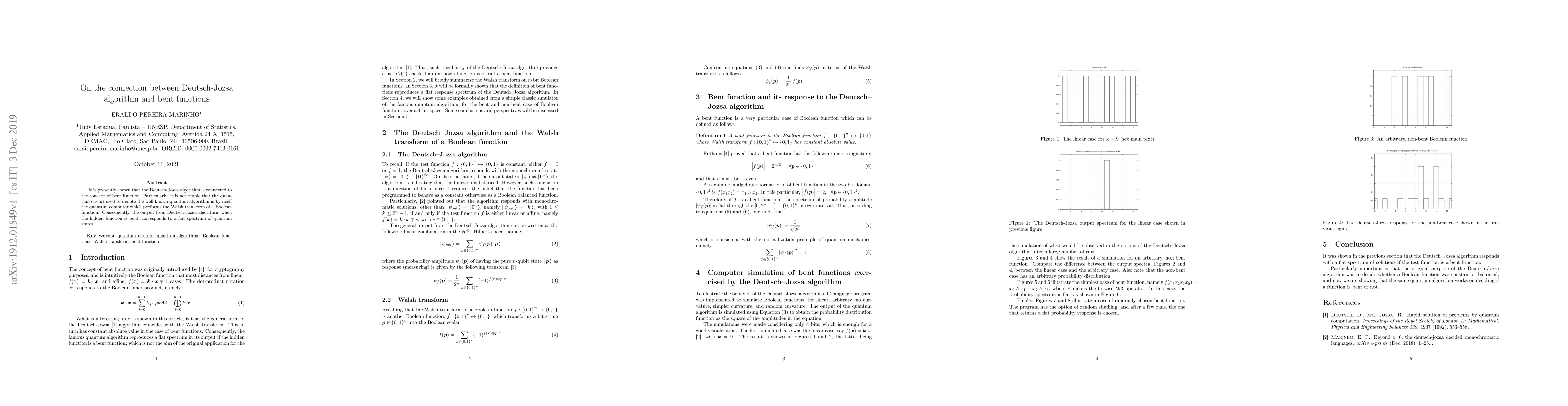 A study found a connection between the Deutsch-Jozsa algorithm and bent functions, showing that applying the algorithm to a bent function produces a flat spectrum of quantum states. This link highlights the potential for quantum computers to efficiently analyze complex Boolean functions.
