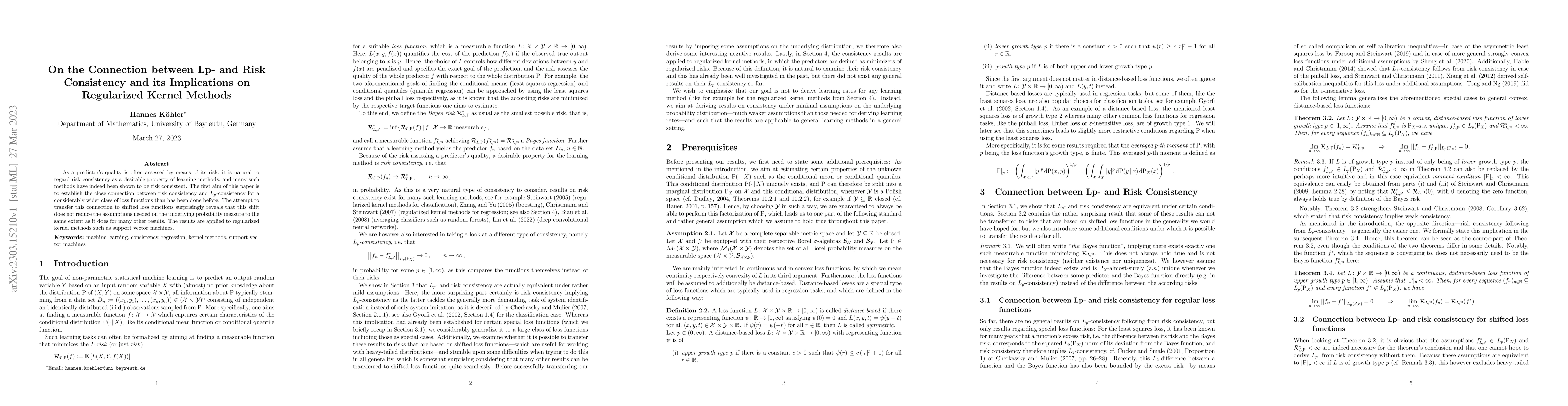 This paper establishes a connection between risk consistency and $L_p$-consistency for a broader range of loss functions, and applies these findings to regularized kernel methods like support vector machines, noting that shifts in loss functions do not simplify assumptions on the underlying probability measure as much as previously thought.